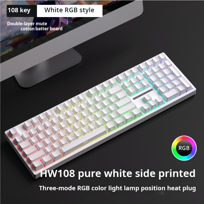 • 【Side-engraved 100% keyboard】This is a Side-engraved mechanical keyboard with 108 keys. A complete 100% keyboard with complete functions, no need to adapt, and quick to get started. Side engraving ensures that the letters on the keyboard cap will not wear out after prolonged use. SIZE: 44*13.2*4cm