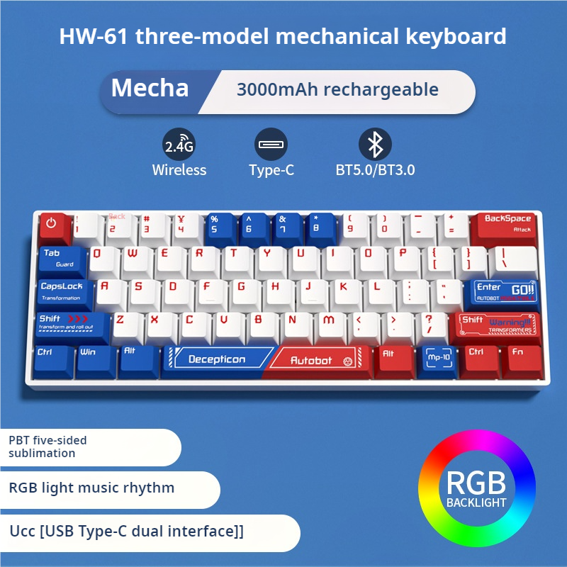 【60% keyboard】 IOAOI is an compact layout keyboard with 61 keys. Concentrates all the essential features you need in a minimalist design. Save more space for your mouse and tidy up the desk. SIZE:29cm * 10cm * 3.8cm