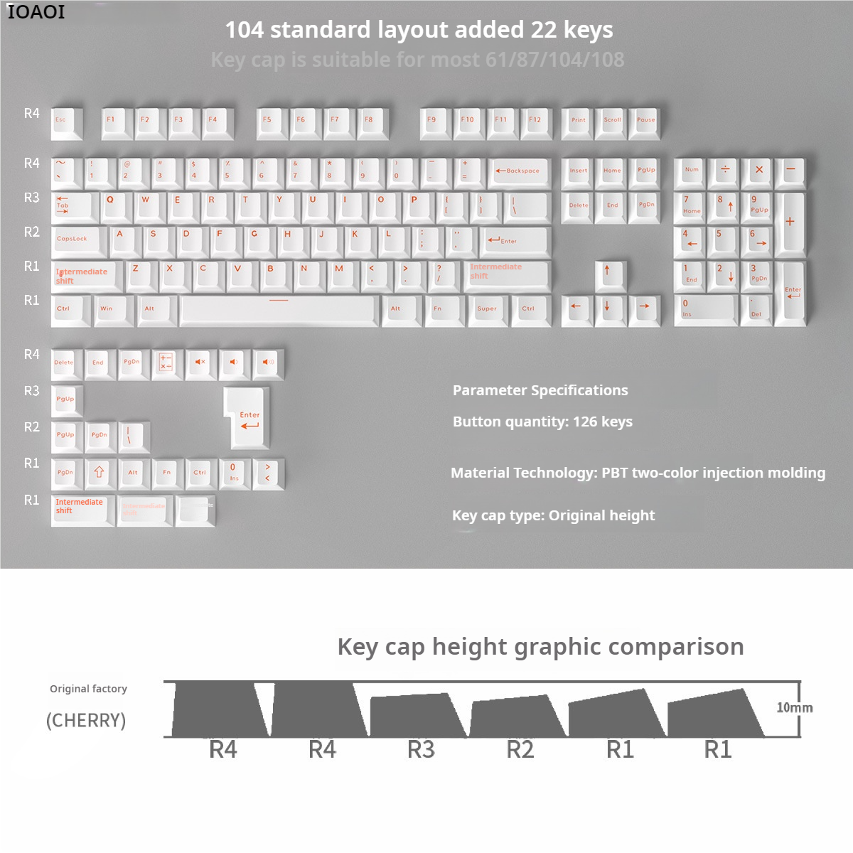 IOAOI  WHITE 126-Keys Cherry Profile PBT Keycap Sets